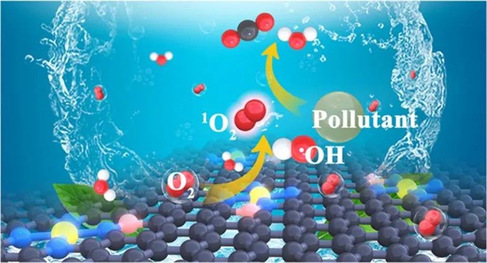 电-芬顿工艺是一种先进的水净化技术,可通过阴极氧还原产生的活性氧(ROS)高效降解难降解有机污染物。羟自由基(•OH)和单线态氧(1O2 )等 ROS 具有不同的氧化能力和应用场景。以•OH为代表的自由基具有很高的氧化还原电位(2.8 V 对 NHE)和很强的氧化能力,能有效地破坏各种污染物。不过,自由基氧化过程会受到无机离子的阻碍,而且通常在酸性条件下才有效。此外,•OH的寿命短(<1 μs),扩散距离有限。作为一种典型的非自由基 ROS,1O2 (2.2 V 对 NHE)对无机盐离子和 pH 值的耐受性更强。它的寿命相对较长(μs-ms),确保催化剂表面生成的1O2 能扩散到溶液中进行净化,提高了1O2 的利用效率。通过亲电加成和电子萃取,1O2 优先针对不饱和有机化合物。通过与•OH(不饱和键的氢抽取和加成)协同作用,它可以促进苯的开环反应。因此,为了拓宽电-芬顿工艺的应用范围,针对高盐浓度或高 pH 值废水,开发具有高选择性生成 1O2 并同时产生少量•OH的催化剂具有重要意义。