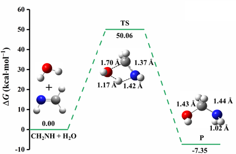 图6 CH2NH在隐式水溶剂化模型下的水解反应的自由能曲线图