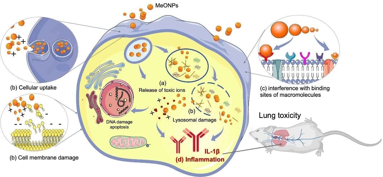 IVIVE模型表明,THP-1细胞中的促炎细胞因子IL-1β可以作为预测肺毒性的体外标志物。此外,材料的尺寸、ζ电位以及体内测试的暴露条件也是影响纳米金属氧化物肺部毒性的重要因素。
