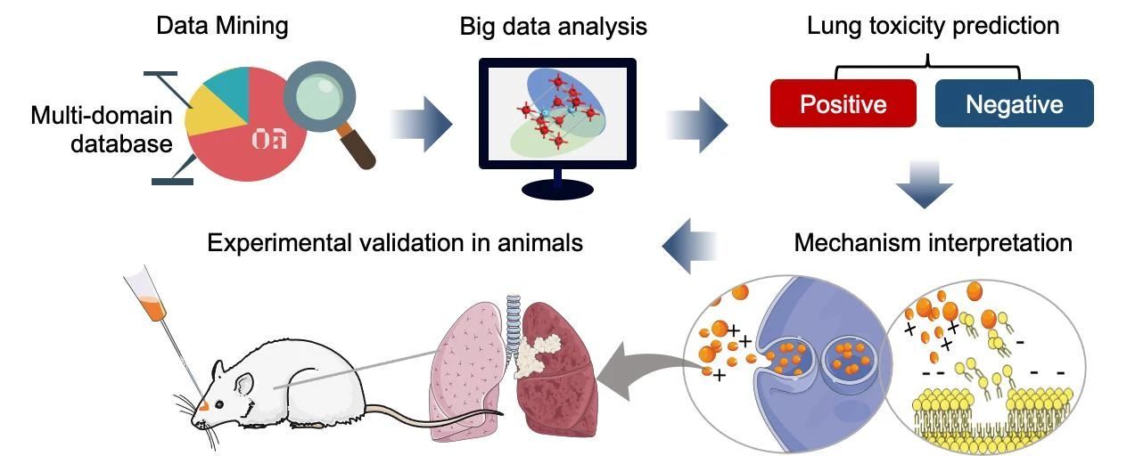 基于机器学习建立了体外-体内外推(IVIVE)模型,将纳米金属氧化物在细胞水平的影响与啮齿类动物的体内肺毒性联系起来,揭示了IVIVE关系。模型在训练集和测试集中的预测准确率分别达到89%和80%。