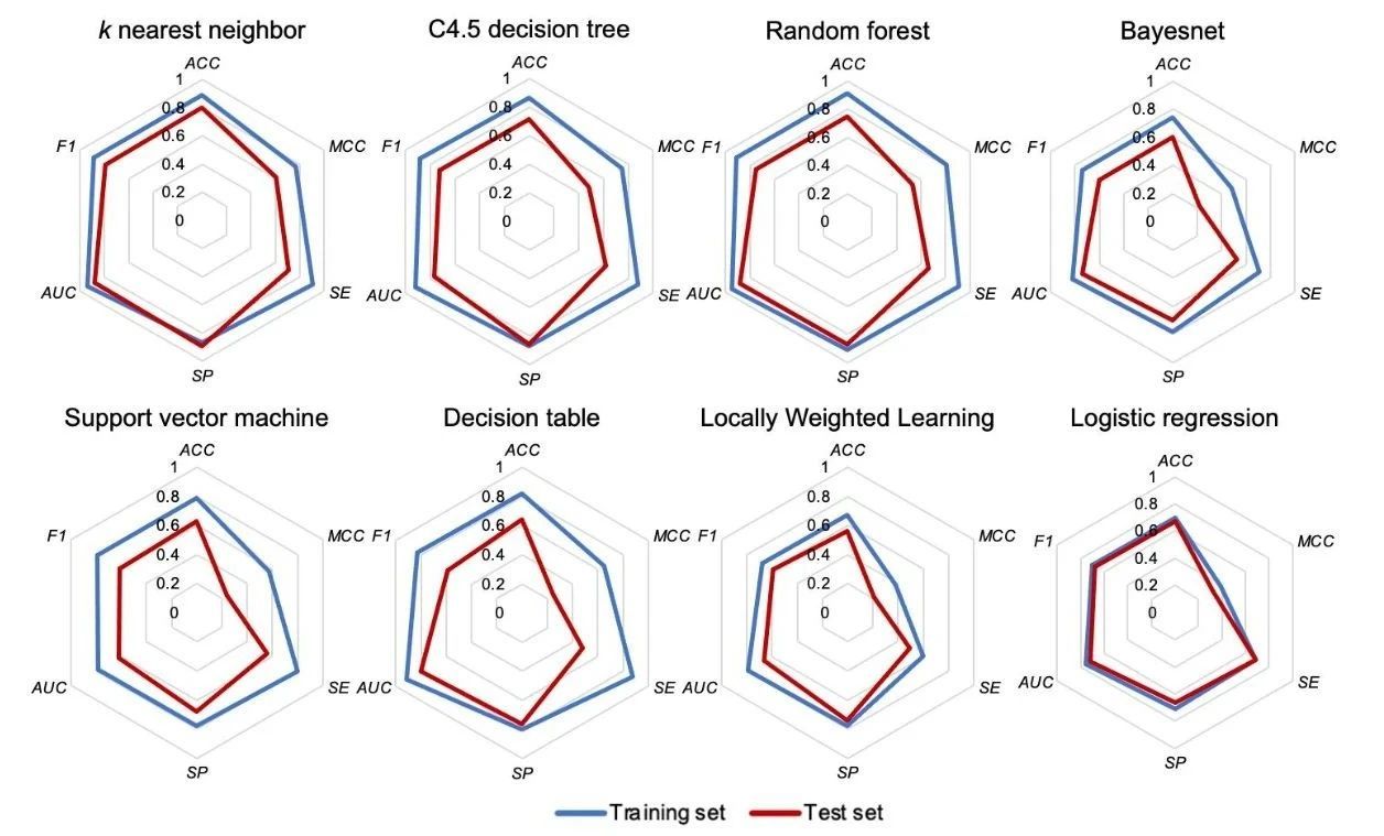 图3 八个机器学习算法的预测性能