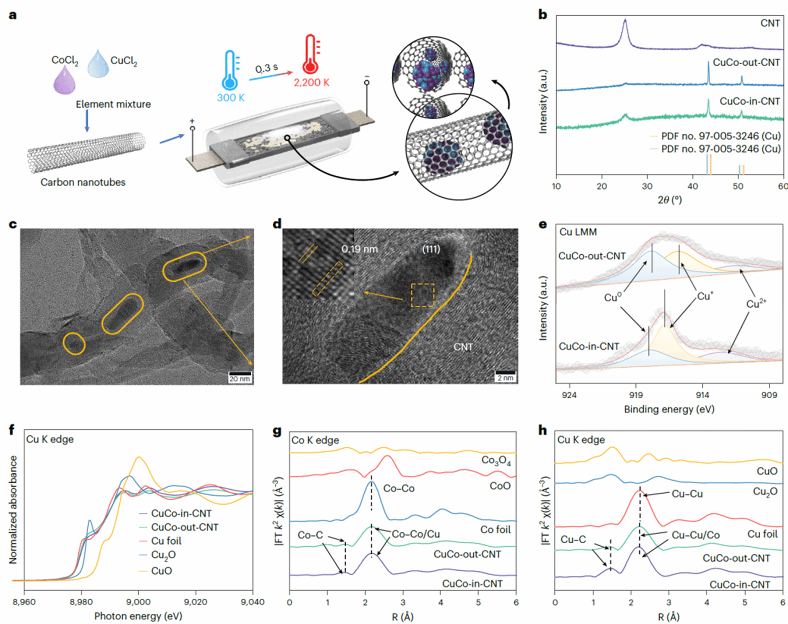 利用焦耳热法方法实现CuCo合金纳米颗粒在碳纳米管内腔的限域封装,揭示材料结构与限域特征。