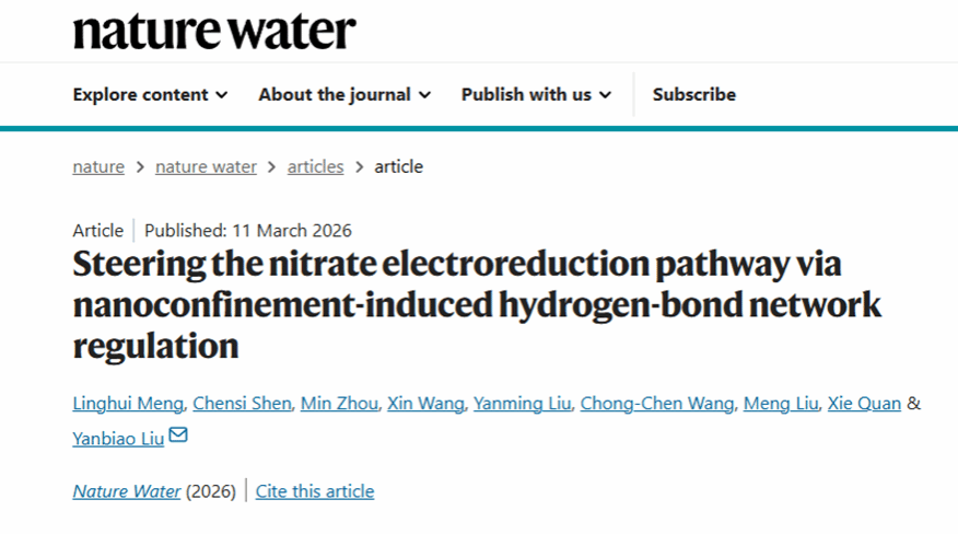 近日,刘艳彪教授团队在环境领域国际权威期刊Nature Water上发表研究成果,提出了一种以纳米限域调控界面氢键网络为核心的新策略,实现了硝酸盐电还原路径由传统“活性氢主导”向质子-电子协同转移(PCET)主导的转变,为高选择性电催化硝酸盐制氨提供了新的机理认知与材料设计思路。