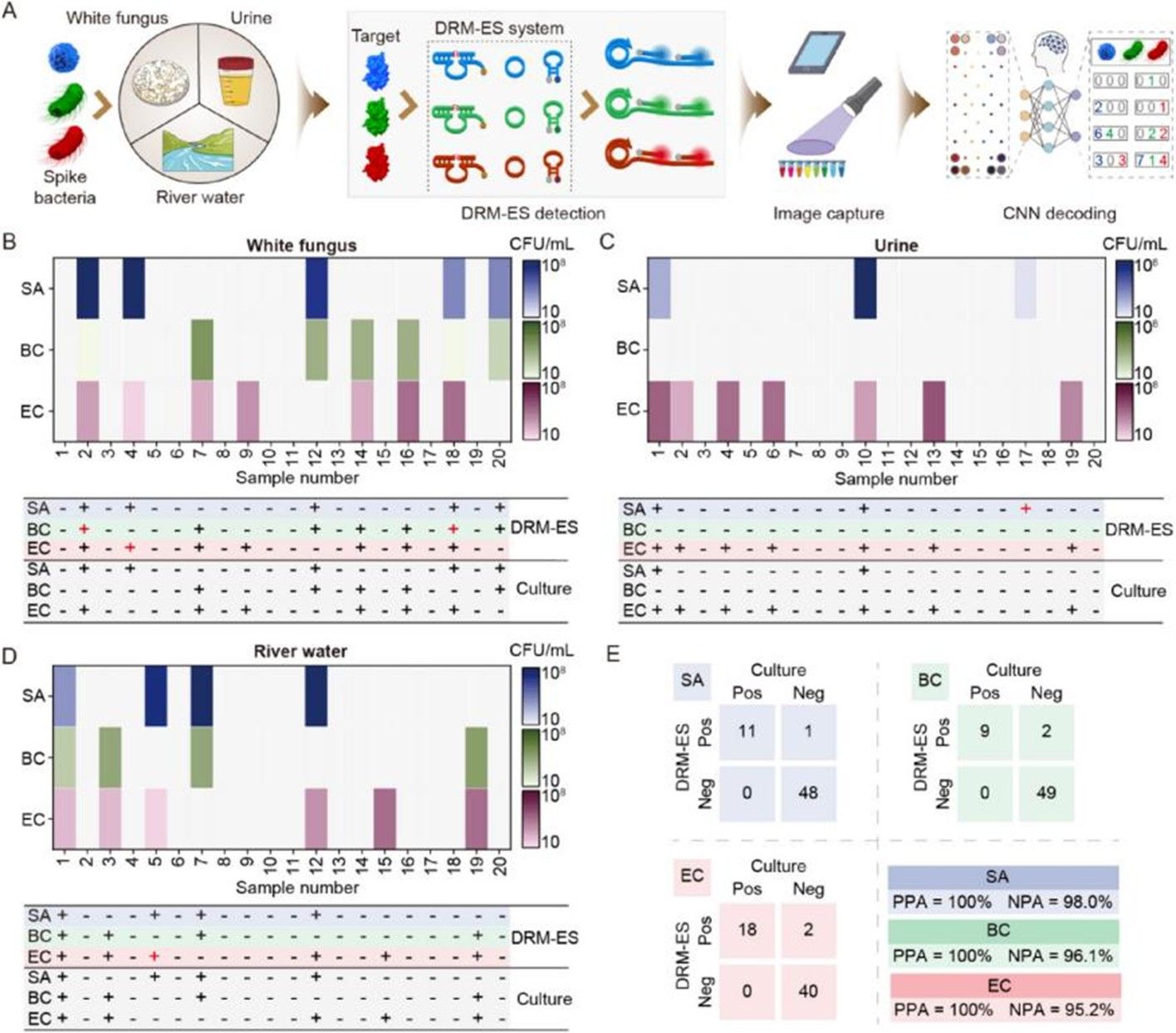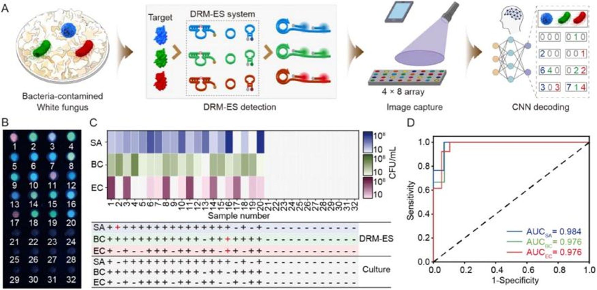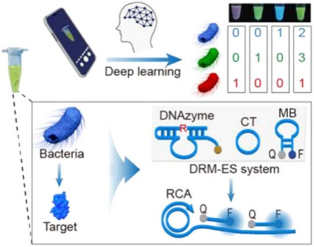 图1. 深度学习辅助DRM-ES系统用于多重活菌检测原理示意图