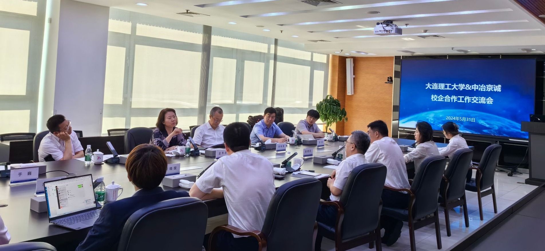 31日下午,在中冶京诚公司董事会秘书、党委组织部(人力资源部)部长的陪同下,孟书记一行6人参观了公司展厅,了解公司发展历程。在随后的座谈会上,双方就人才培养、就业指导和环境相关业务科研合作等进行了充分交流,初步明确了后续合作方向。