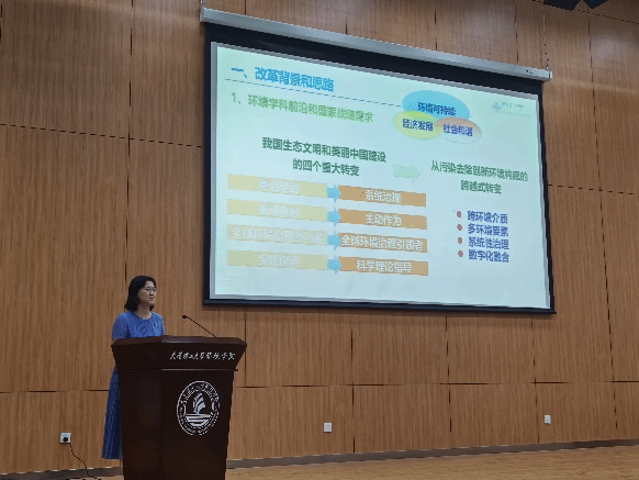 副院长刘薇介绍了学校和学院人才培养改革的背景和思路,介绍了学院新修订的人才培养方案的总体原则、内容设计等,根据新方案的课程设置和任课教师选聘等要求,希望教职工能够加速思想转变,适应时代发展对环境学科人才培养的需求,不断提升学院办学质量和活力。