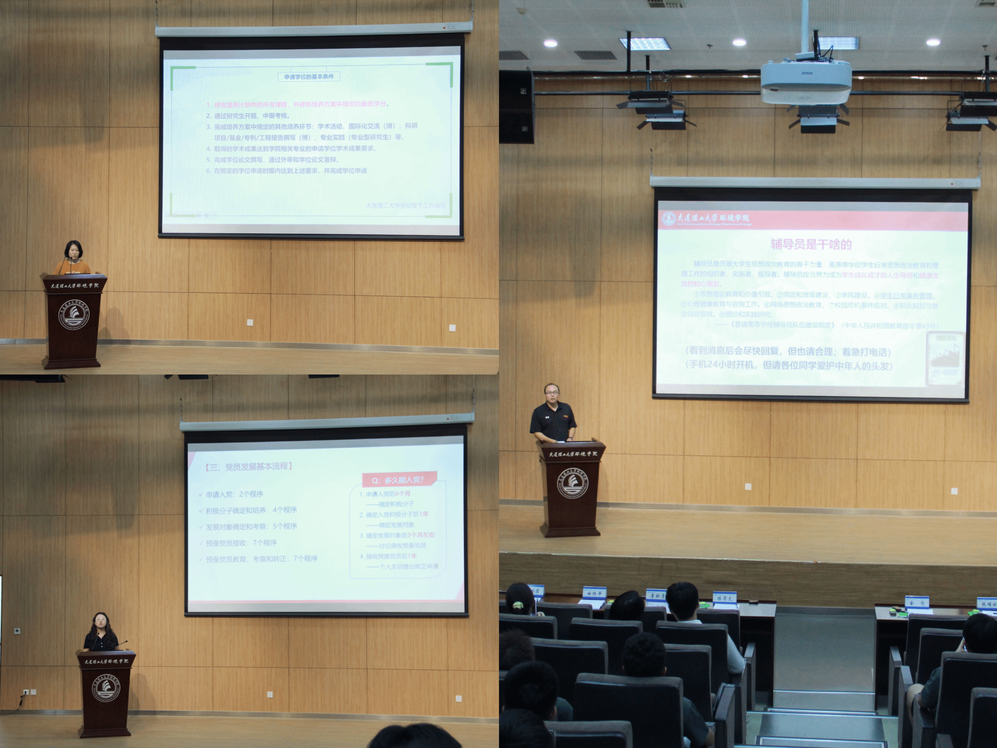 学院党委组织员胥吉萍,从党员发展要求、程序以及入党动机等方面进行重点讲解。研究生教务员樊金萍详细阐述研究生教学培养的相关规定及毕业要求。学办主任、研究生新生辅导员林鑫,重点解读《研究生手册》,引导新生遵守校规校纪,尽快适应研究生生活。