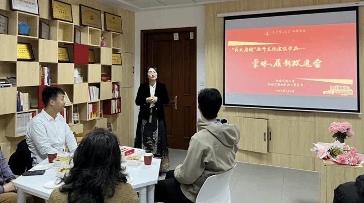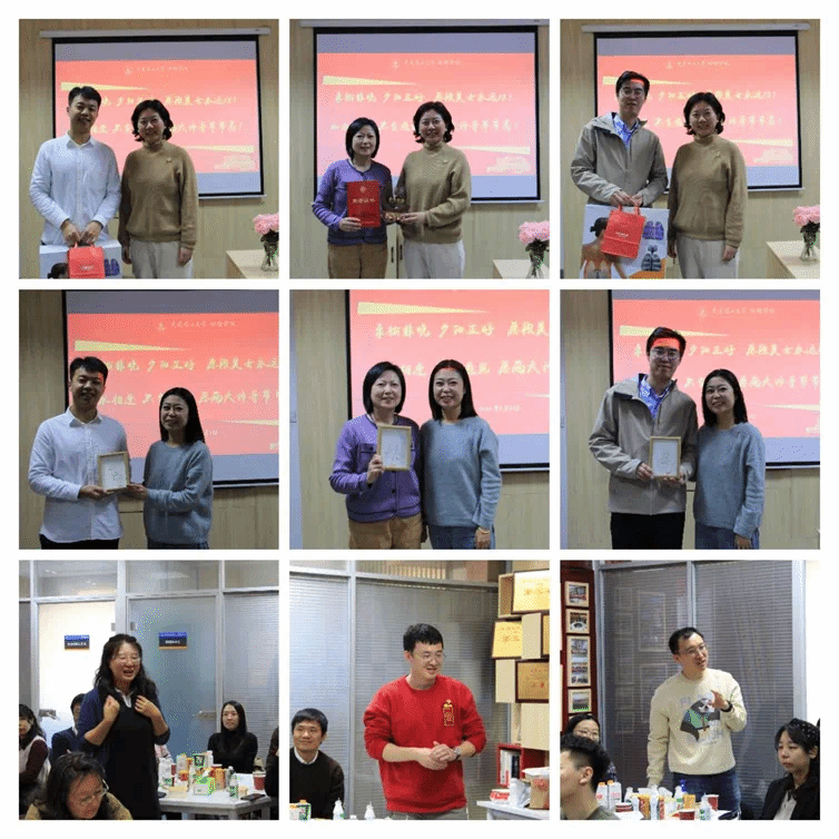 2024年3月8日,由我院工会主办、机关教工党支部承办、学院师生代表共同参与的荣休、履新欢送会特色主题党日活动顺利举行。活动以“桑榆未晚 夕阳正好”为主题,为退休的前辈段景丽老师以及即将奔赴新岗位的齐保坤老师、王华熠老师举办了一场温馨的冷餐欢送会。会议由学院工会委员于巍主持。