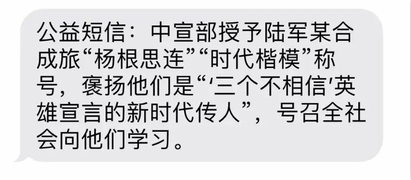 刚刚走出庄严肃穆的抗美援朝纪念馆,大家的手机便纷纷收到了一条短信:“中宣部授予陆军某合成旅‘杨根思连‘’时代楷模’称号”。